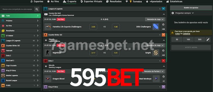 O 595bet oferece uma grande seleção de opções de apostas em e-sports com probabilidades competitivas